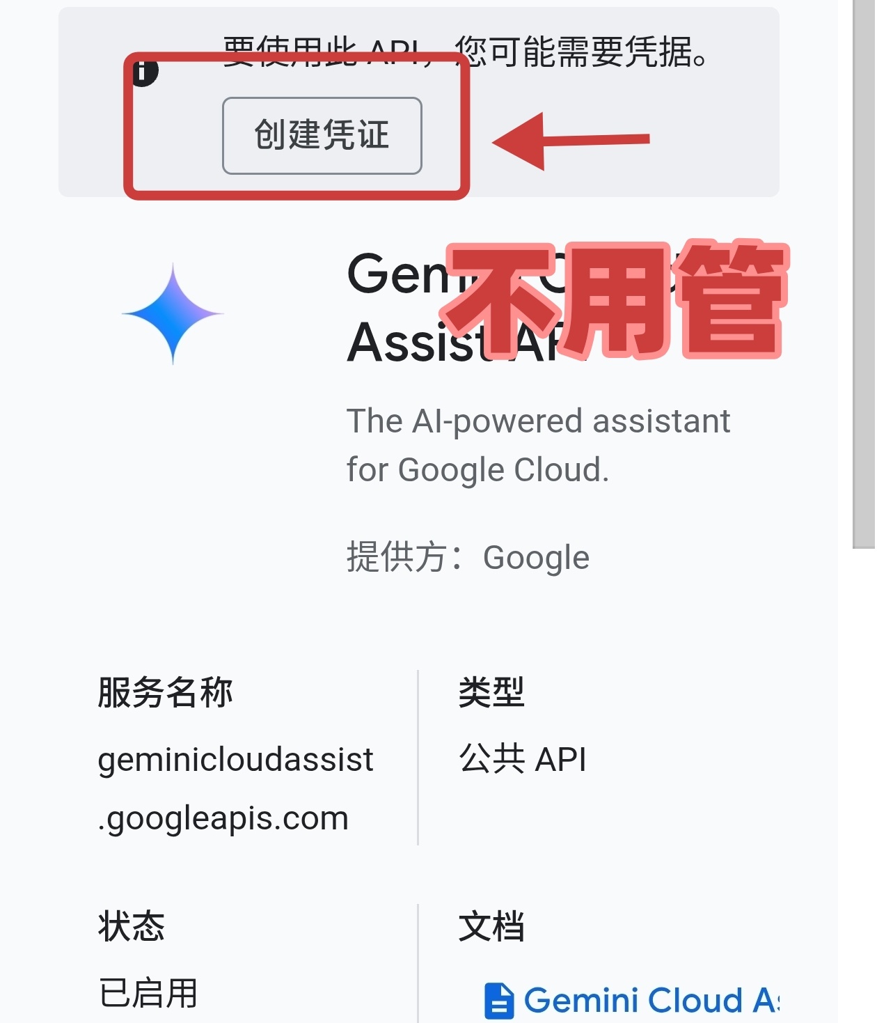 - [Gemini Cloud Assist](https://accounts.google.com/v3/signin/accountchooser?continue=https%3A%2F%2Fconsole.cloud.google.com%2Fapis%2Fapi%2Fgeminicloudassist.googleapis.com%3Fhl=zh_CN&service=cloudconsole&flowName=GlifWebSignIn&flowEntry=AccountChooser)