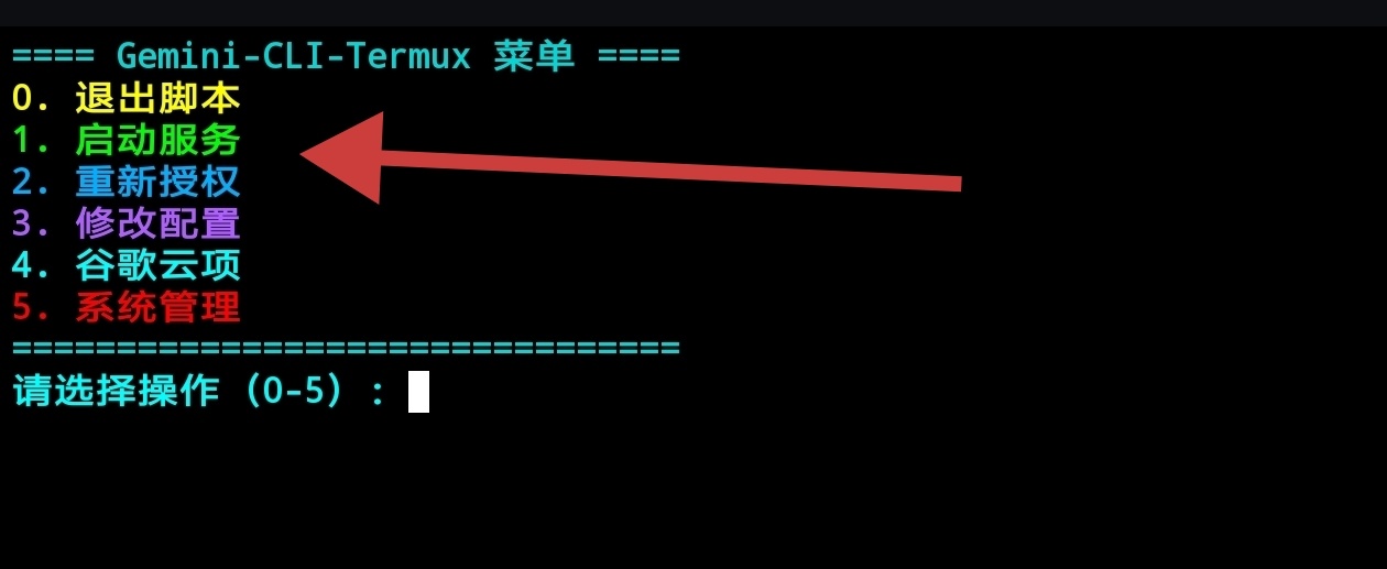 免责声明:本文章仅做技术分享,讨论如何使用安卓手机部署Gemini-CLI反向代理,无不良导向。