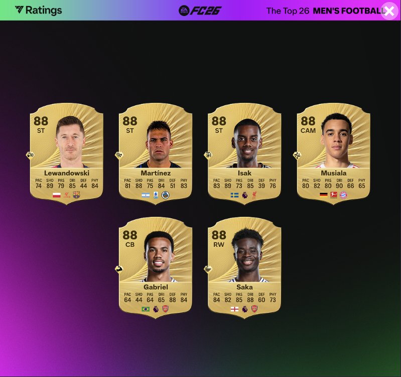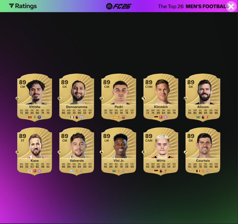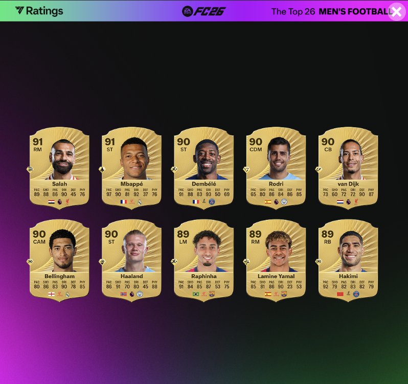 查閱《EA SPORTS FC™ 26》官方評分,看看您最喜愛的球員在羣星中位列第幾。您認同《FC》的評分嗎?
