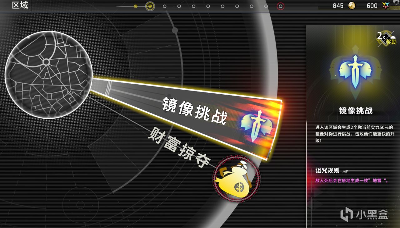 右下角的诅咒规则就是这个房间中的debuff,玩家需要在这种附加debuff中通过房间。而在通过之后,诅咒房间给的奖励是普通房间的双倍。也就是说,虫核房可以得到双虫核,装备房可以得到双装备。另外,有个小tip,在持有复苏戒指的情况下进入【身躯强化】房间,可以获得两次强化和两个虫核,基本相当于四倍奖励,所以碰到这个装备不要错过哦!