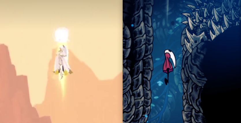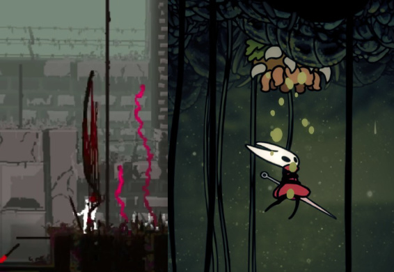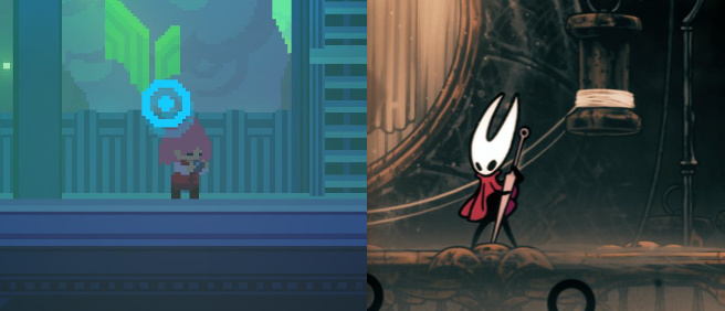 相比于小骑士,大黄蜂在战斗系统上进行了大刀阔斧的灵活化改进,使得其本体在获得到疾风步这个技能后操控手感逐渐顺畅,空中滑翔冲刺、钩索和快速冲刺等新能力,后期解锁的大跳更是在很大程度上给玩家解决了后期的破锁和能力进化后的爽感问题,使本作在动作层面上与前作有显著区别,并给出了一份相当完美的答卷。