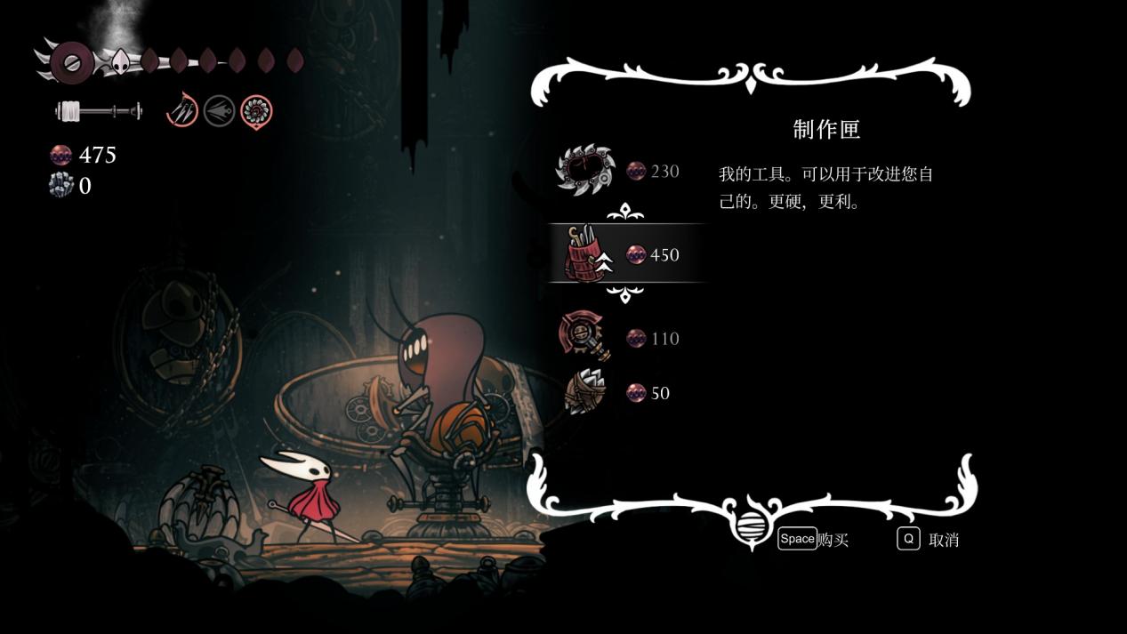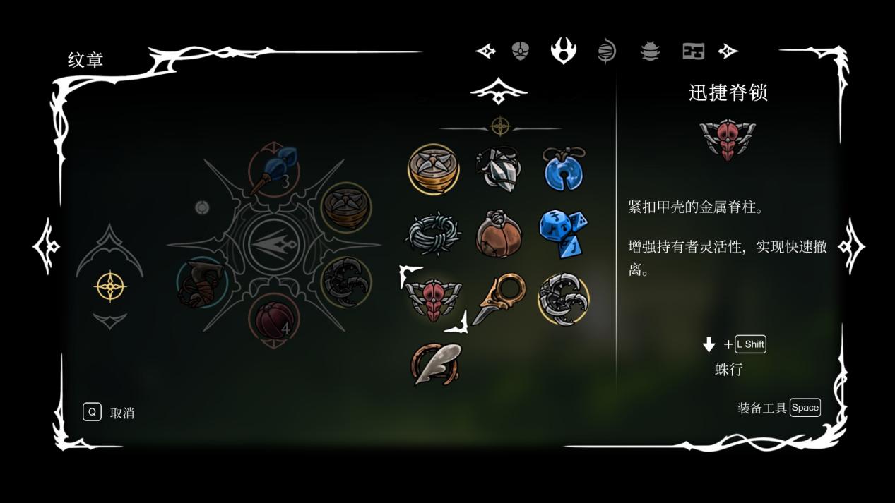 在纹章定制系统方面,本作通过各种风格不同的纹章,用来展现各类玩家的玩法,通过该系统允许玩家尝试不同的战斗风格,你既可以和我一样选择野兽纹章打够丝就莽上去嗷嗷加攻击回血,也可以用切割者循序渐进地战斗回丝,也可以带工程师纹章找各种工具坐上轮椅,工具用完就直接修,可以说在相比于《空洞骑士》而言难度显著增加的丝之歌里,你无论用什么样的奇淫巧技,都是可以被游戏接受的,