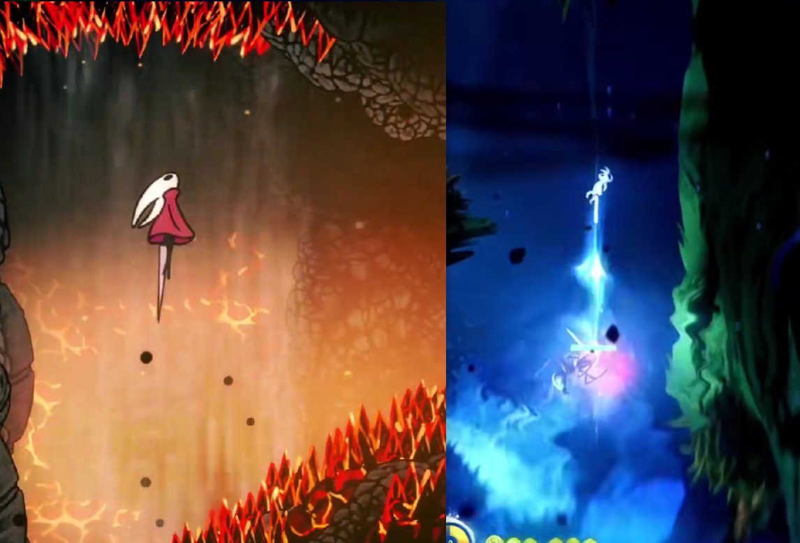 如果你是一个其他游戏涉猎广度多的玩家,你会在游戏之余发现樱桃工作室在这六年的时间里真的向很多优秀作品学习到了很多优秀的设计,包括但不限于《不死鸟传说:觉醒》的音乐演奏、《心渊梦境》的超级大跳、《奥日》系列的银之树逃亡、《蔚蓝》的连续Dash、《雨世界》的拟态怪等等等等还有我没提到的作品,甚至你还可能会在某个游戏节点里发现《艾尔登法环》里的铁处女“随机”刷新在地图的某个角落把你抓进牢里一顿羞辱,当然,这些优秀设计的传承,也包括他们引以为豪的齿轮下劈,