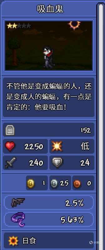 這位更是許多作品裏的常客,而泰拉瑞亞中吸血鬼的形象應該來源於1931年的經典電影《德古拉》。