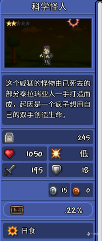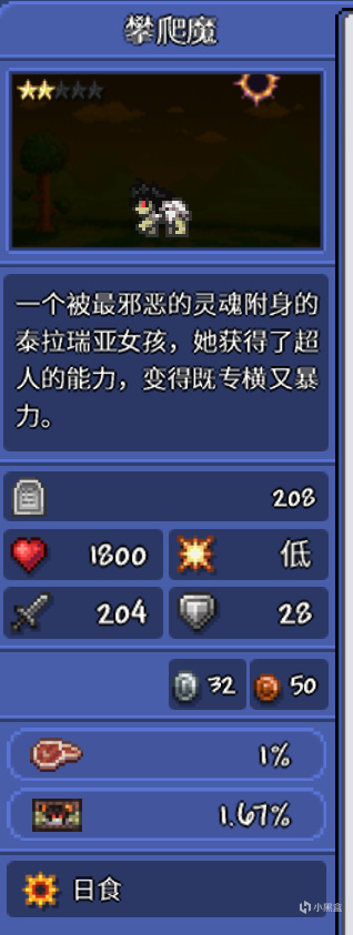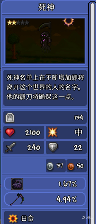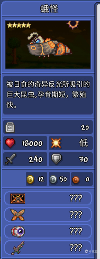 首先在肉後,擊敗了所有機械boss,還未擊敗世紀之花時,日食中所出現的敵怪如下圖所示。