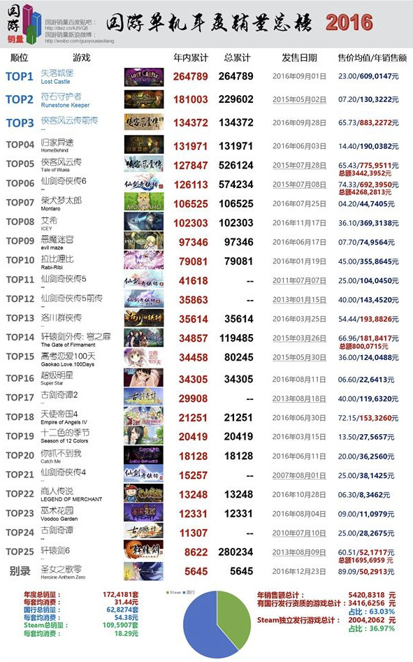 2015 年,中国单机游戏市场实际销售收入1.4亿元人民币;2016年中国游戏产业报告,单机游戏销售收入占比0.1%;