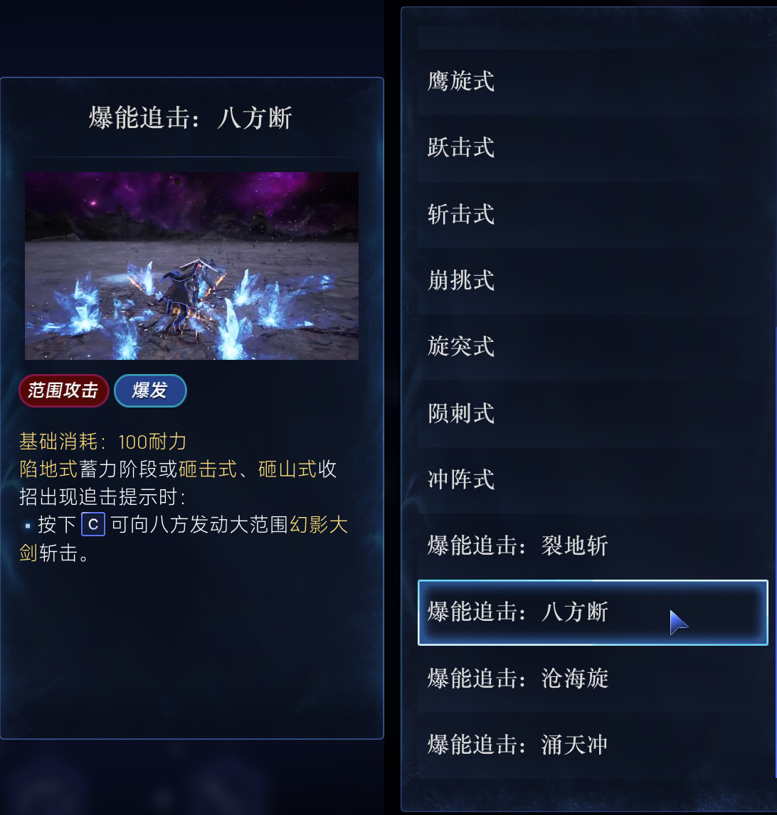 整体里的连招思路是在结束某个招式或连段之后打出一个派生的追加攻击,熟练之后就是一套按键精简组合技,而非常规的几X攻击组合的背板,给足了“我上我也很强”的感觉。