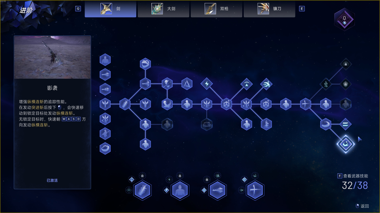 技能树点的派生有些许扩展体验但不深,解锁技能的思路基本作为连招的延伸或派生,且四种武器的技能树是独立的,这使得想要体验完整的多花样的组合技连招,就要一种武器解锁到头,那后续解锁的武器必然没有那么多资源投入,需要做取舍。