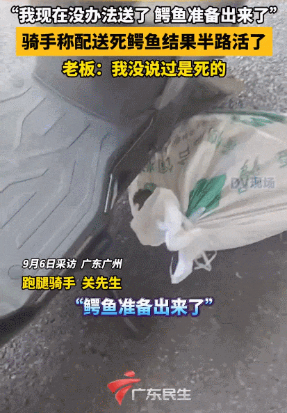 9月4日,广州的跑腿骑手关先生接到一个订单,要求将一条鳄鱼运至某饭店。他说当时他被告知“鳄鱼是死的”,但送货途中,尼龙袋里的鳄鱼突然开始挣扎,还弄坏了他的鞋子。关先生称,若知道鳄鱼是活的,自己就不会接这个单,并质疑老板对于鳄鱼的包装方式不够安全。