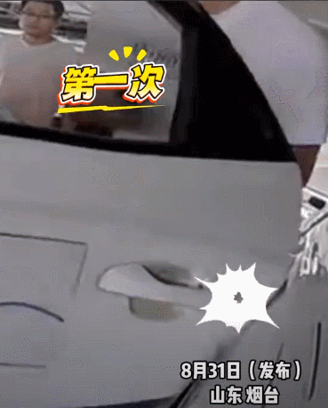 近日,山东烟台,男子对旁边车6此开门杀,不系安全带起步被绝杀。