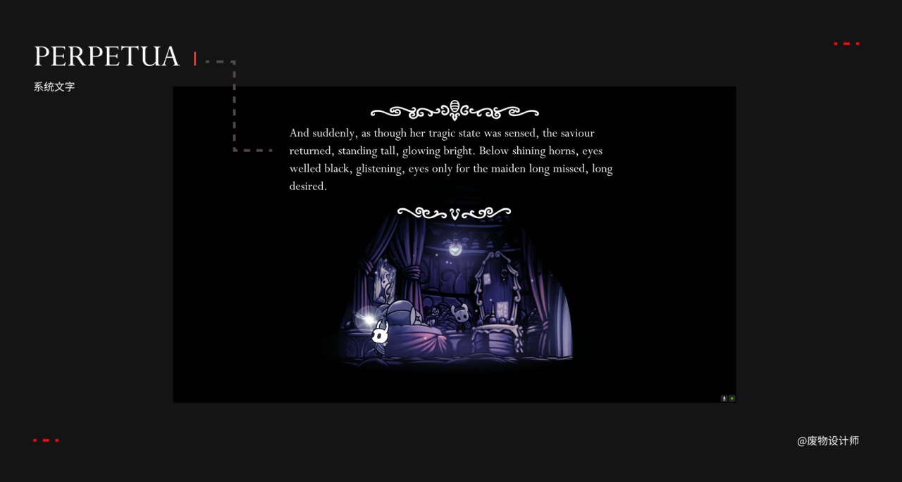 这种字体赋予文本一种庄重感,字体的气质很大程度上来自于锋利的衬线,与《丝之歌》的整个游戏氛围契合。