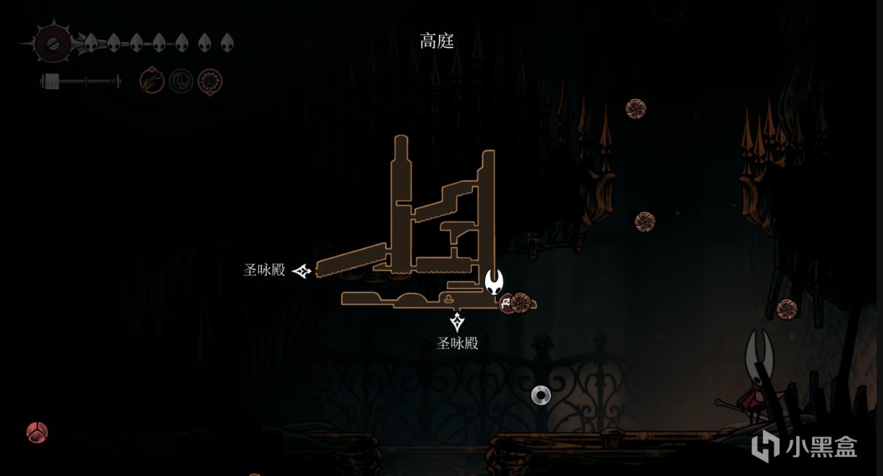 坐电梯前往高庭,电梯一出来就可以看到有个匕首在闪光,非常贴心的给了标记。