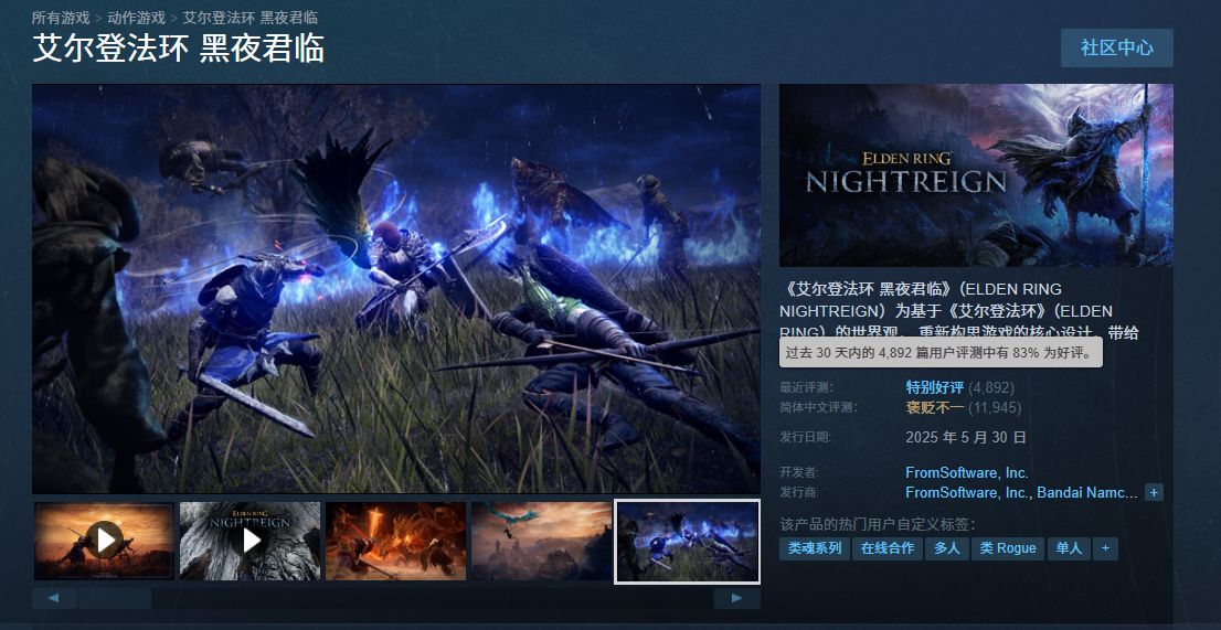 時隔三個月,這款被譽爲“拼好魂”的《黑夜君臨》在Steam上最近30天的評價裏已回暖至83%的特別好評。