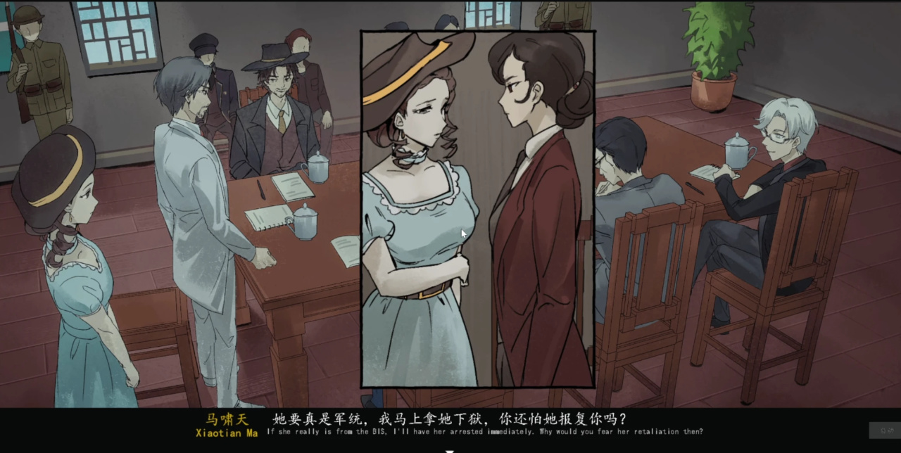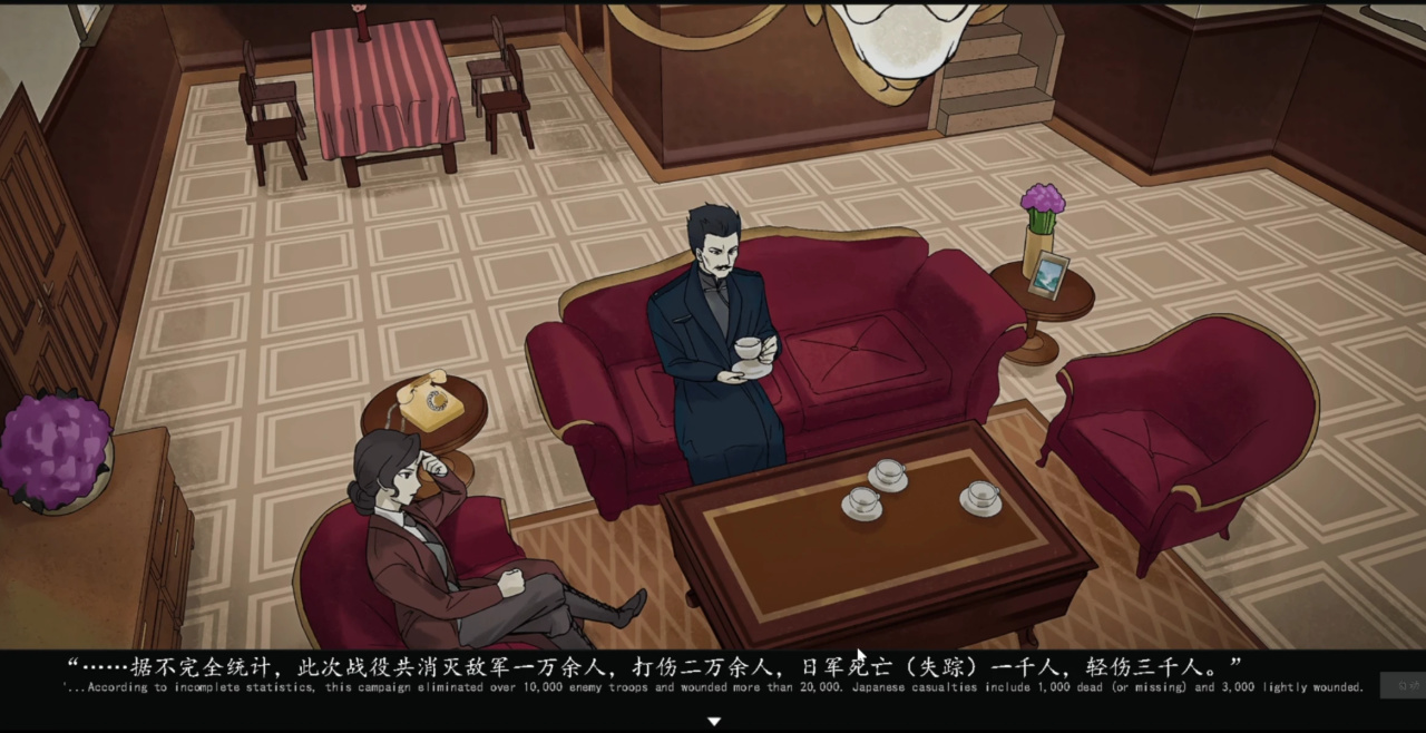 已知《沉舟》中夏花所处的时间点是:抗日战争已经进行了6年,还有2年就胜利了。日军再猖狂,也是敌不过因果律和历史的大车轮的。所以,我认为起码现在要“苟活”下来,挺过这两年。而不看攻略,依靠对于现场局势的分析,看看自己是否能顺利存活,就是我游玩《沉舟》的动力。
