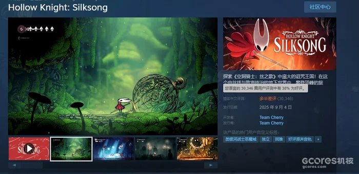 ● 《空洞骑士:丝之歌》steam在线人数突破56万,国区好评率跌至38%。
