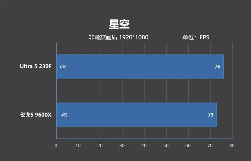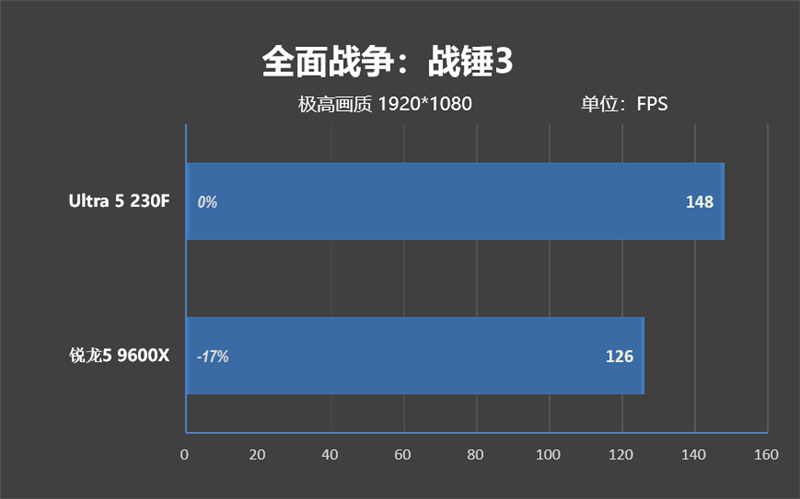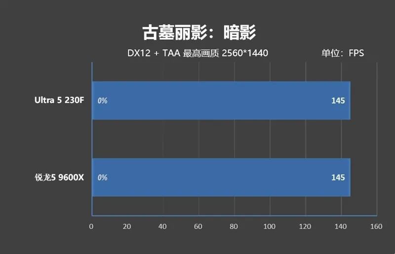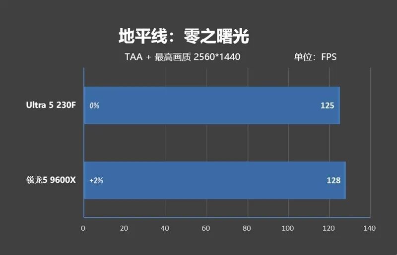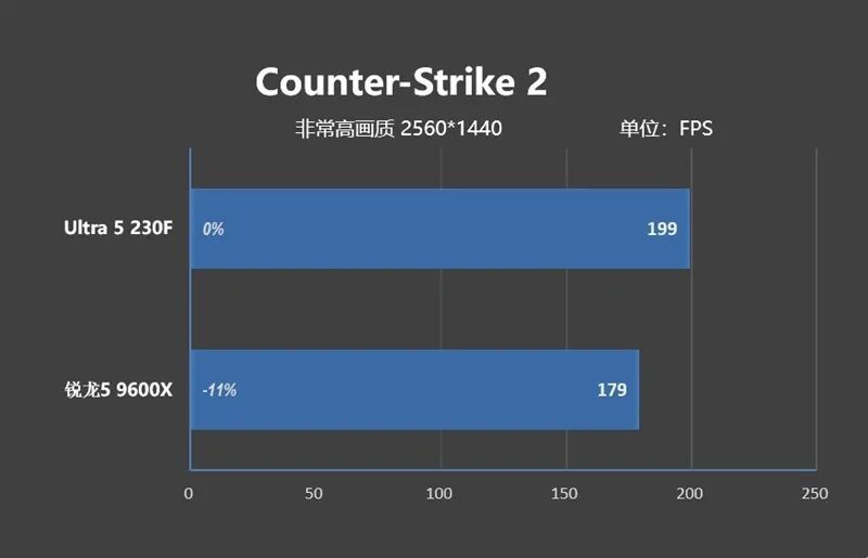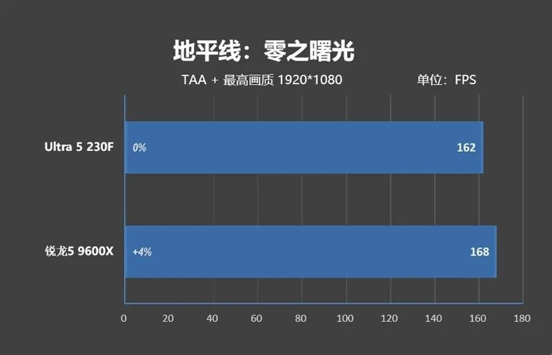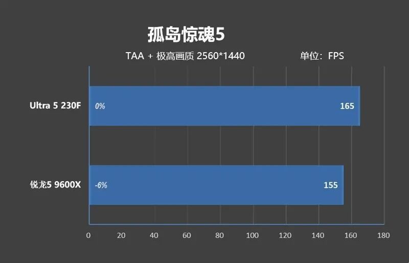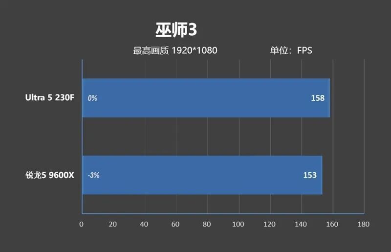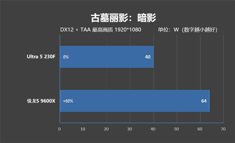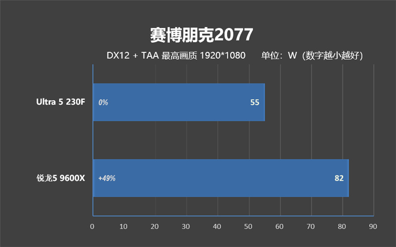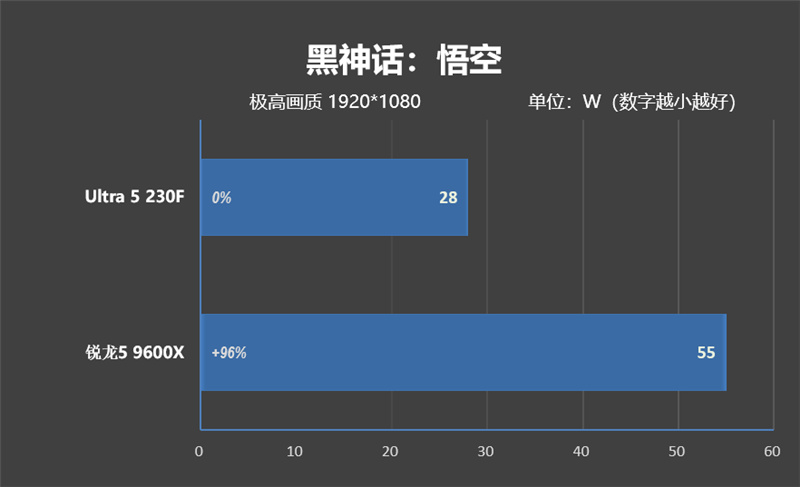 在遊戲幀率相差不大的情況下,Ultra 5 230F的能效比竟然比銳龍5 9600X高出了70%。