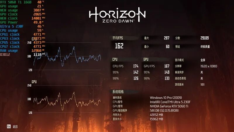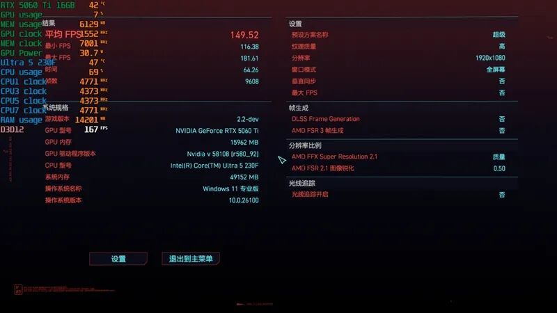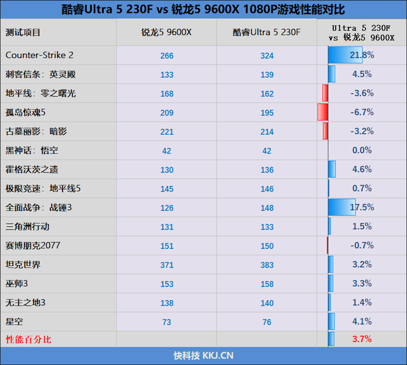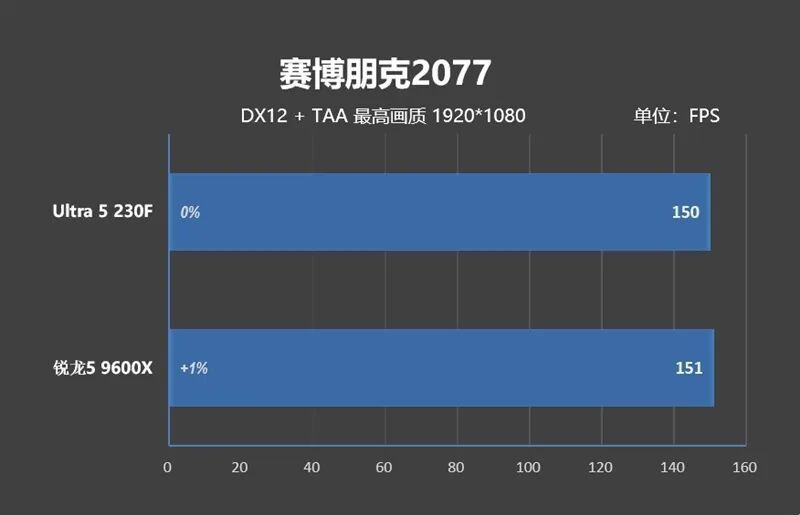 三、1080P遊戲性能測試:竟然是Ultra 5 230F幀率領先了3.7%