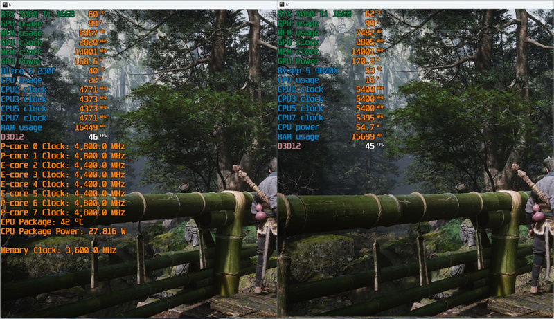 二、遊戲功耗對比:銳龍5 9600X的遊戲功耗竟然高了70%