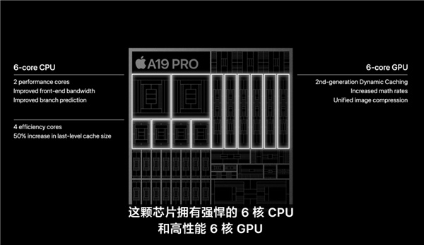 性能是這次的重大亮點之一,搭載A19 Pro處理器,擁有6核CPU、6核GPU(Air只有5核GPU)。