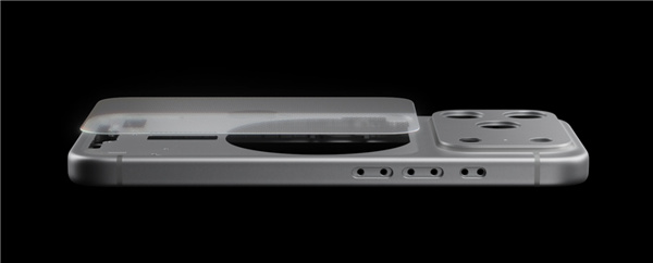 機身背部下下方則是首次採用陶瓷盾玻璃,抗摔性較前代背部玻璃提升4倍,同時厚度更薄,爲內部組件騰出空間。