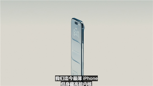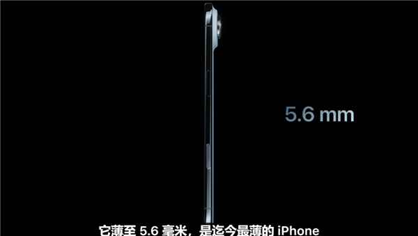 該機最大亮點在於極致輕薄,機身厚度僅5.6mm,成爲史上最薄的iPhone,採用5級鈦金屬機身,前後雙面超瓷晶面板。