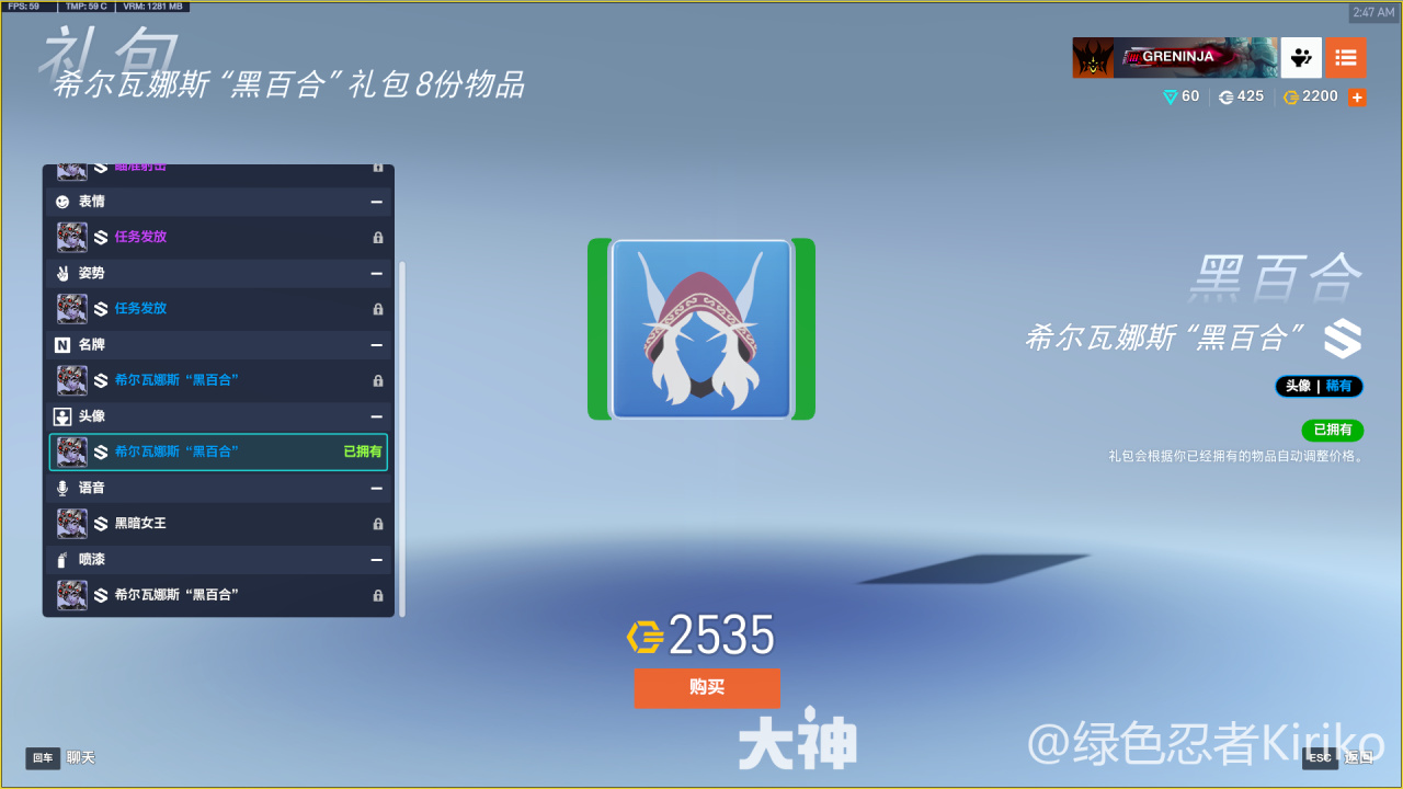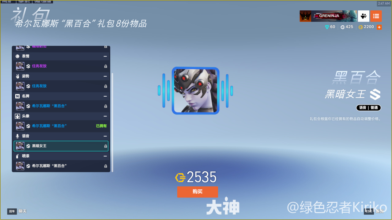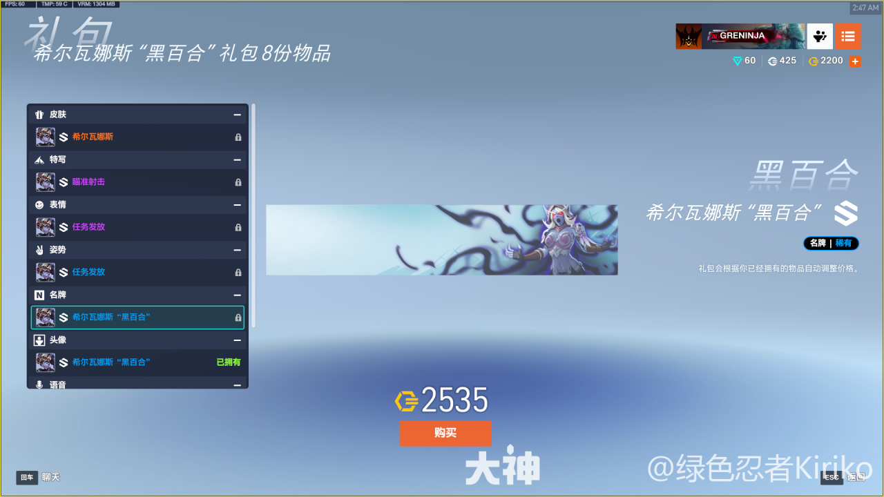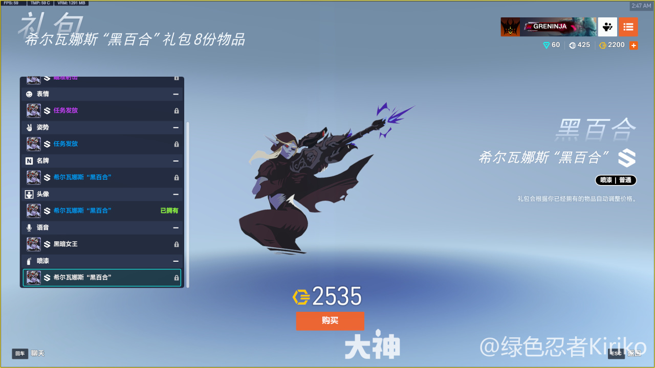希爾瓦娜斯“黑百合”禮包(2600)