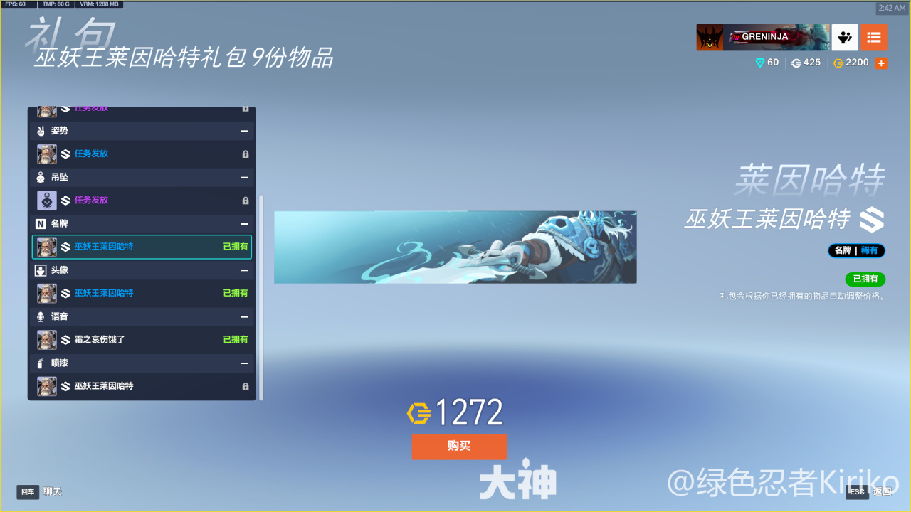 巫妖王菜因哈特禮包(2600)
