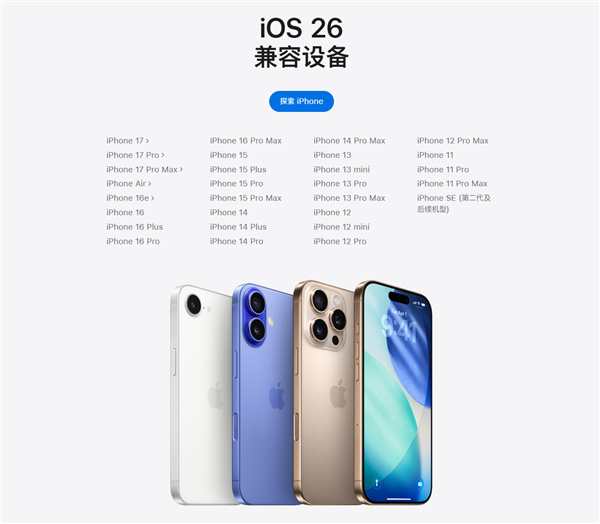 同时,苹果官网也列出了iOS 26正式版的推送时间,将在9月16日正式登场。