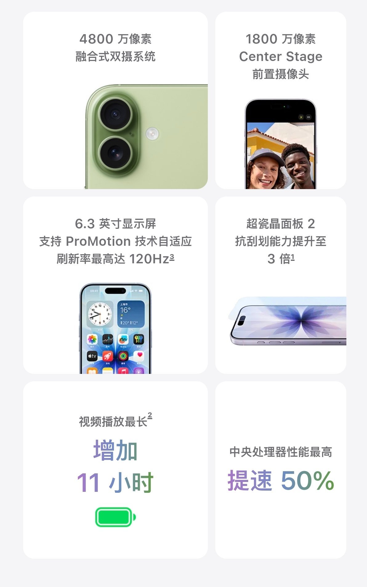 前置18MP Center Stage摄像头(f/1.9)