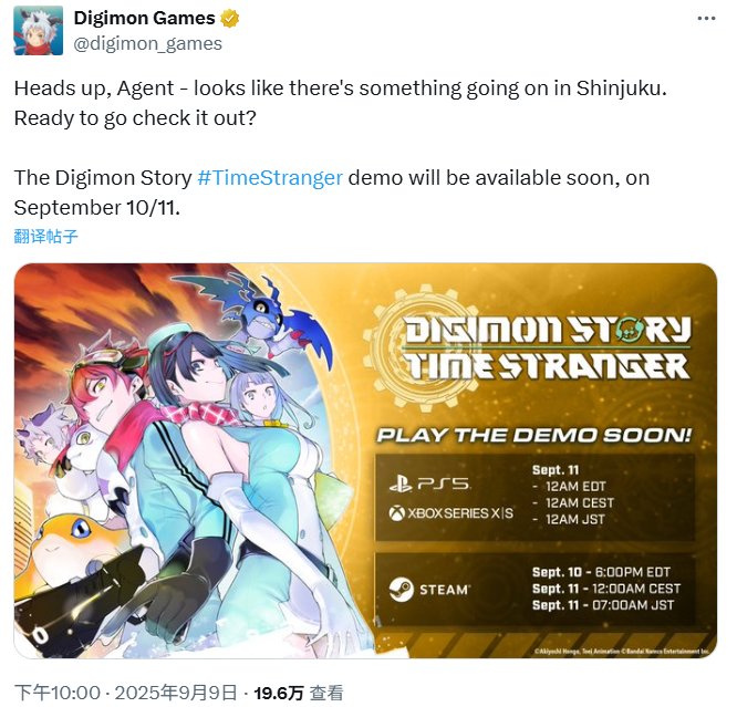 《数码宝贝》游戏官方账号发布预告:"注意,特工——新宿区似乎有异常情况。准备好前往调查了吗?"该贴文确认玩家无需久候即可体验本作。