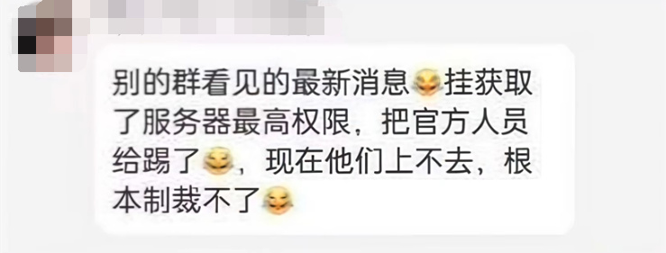 后来一打听才知道,原来是一个不知道哪来的黑客大佬给全民枪战的总服务器给黑了,不仅获得了最高权限,还把官方人员给踢了。