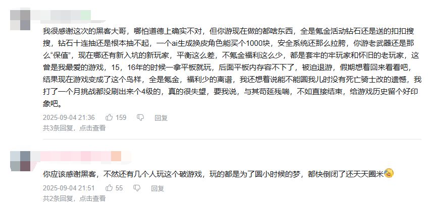 不过你是知道的,这类游戏都难逃崩坏的命运,各种性能超标的氪金武器越来越多,外挂也越来越难以管制,平民玩家的游戏体验被不断挤压,只能纷纷退坑,再加上后来他们还和腾讯打了场侵权官司赔了不少钱,经历接二连三的问题后,游戏最终也是和它的诸多前辈一样,变成了氪佬和挂哥的天下,要不是冒出了这次黑客入侵事件,我都不知道这游戏居然还活着。