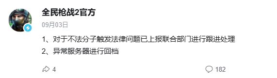 玩家上线看到的这些都是大哥免费发放的高额福利,而官方这边想管也管不了,就像一个无能的丈夫一样看着自家的服务器被黑客玩弄,只能发发动态表示要追责,并要在后续对异常服务器进行回档。