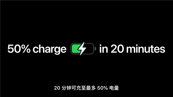 续航也毫无意外的再刷新纪录——最长30小时视频播放,比iPhone 16多出8小时;iOS 26的自适应电量模式会学习用户习惯,主动延长续航。快充也升级,选配(注意还是没有充电头啊)高功率USB-C充电器20分钟可充至50%。
