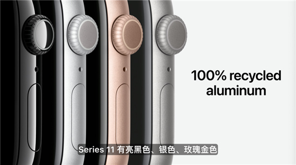 Apple Watch 11表壳继续提供42与46mm两种尺寸,分Wi-Fi与蜂窝版本。铝金属款有亮黑、银、玫瑰金和深空灰;抛光钛金属款提供原色、金色与板岩色。售价2999元起,今日开启预订,9月19日正式开售。