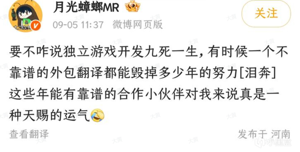 至于发售首日被吐槽最多的本地化翻译问题,我觉得可以参考月光蟑螂老师的这篇微博,毕竟对很多类银玩家来说都是光顾着探索跟战斗爽了,对剧情的观感可能是“叽里咕噜说啥呢”(所以说独立游戏也挺不容易