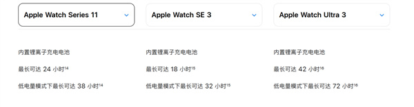苹果表这边一共发布了三款 —— Apple Watch Series 11 、 Apple Watch SE 3 和 Apple Watch Ultra 3 。