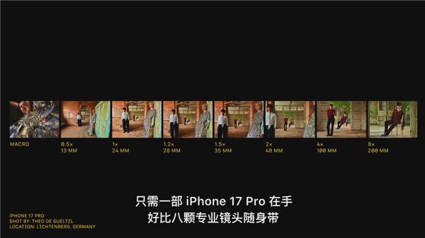 这第三,就是让 iPhone 17 Pro 和 Pro Max 能安置下更强的 “ 全 4800 万像素融合相机系统 ” ,通过一系列乱七八糟的像素融合和微距功能,官方说一部手机在手,能顶八个专业镜头随身携带。。。