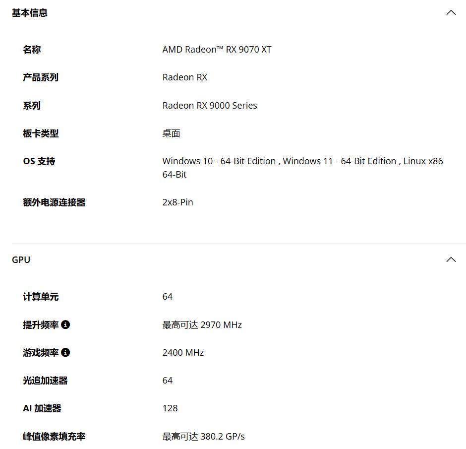 作为RDNA4架构的满血NAVI 44核心,9070XT在4nm制程计算单元的加持下,相较公版设计的2970Mhz,Boost频率进一步提升达到3100MHz,64个计算单元,4096个流处理器。能够感觉到,对于RX9000系的每一款产品,AMD的定位都非常明确,RX9070XT,就是在2K高帧率和入门级4K这个阶段与竞品5070ti展开错位的竞争。