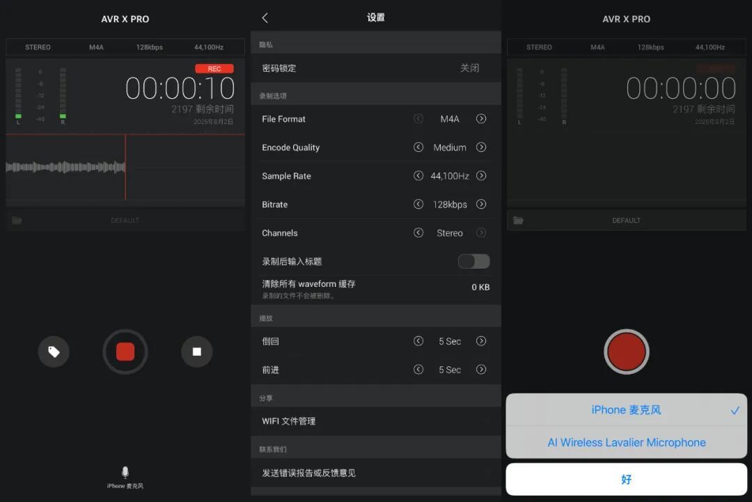 使用的时候可以将录音文件转换为MP3、WAV和M4A等格式,并且提供无限制的录音时间,适合录制长时间的会议或访谈内容。文件分享和管理功能也非常方便,录好的音频可通过iTunes、电子邮件、AirDrop等方式分享或发送到别的设备。