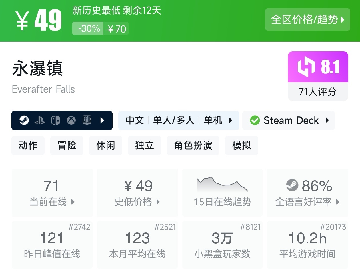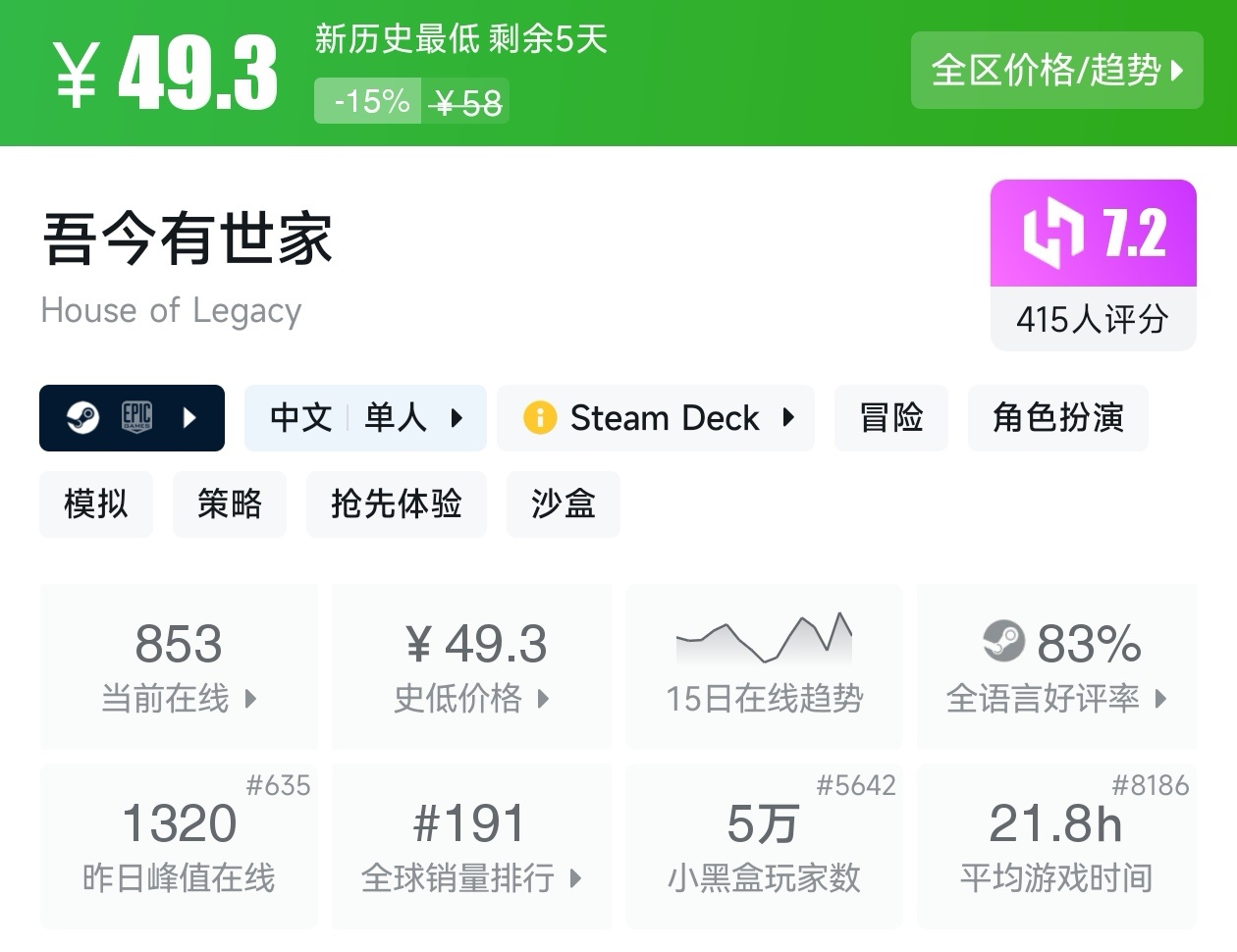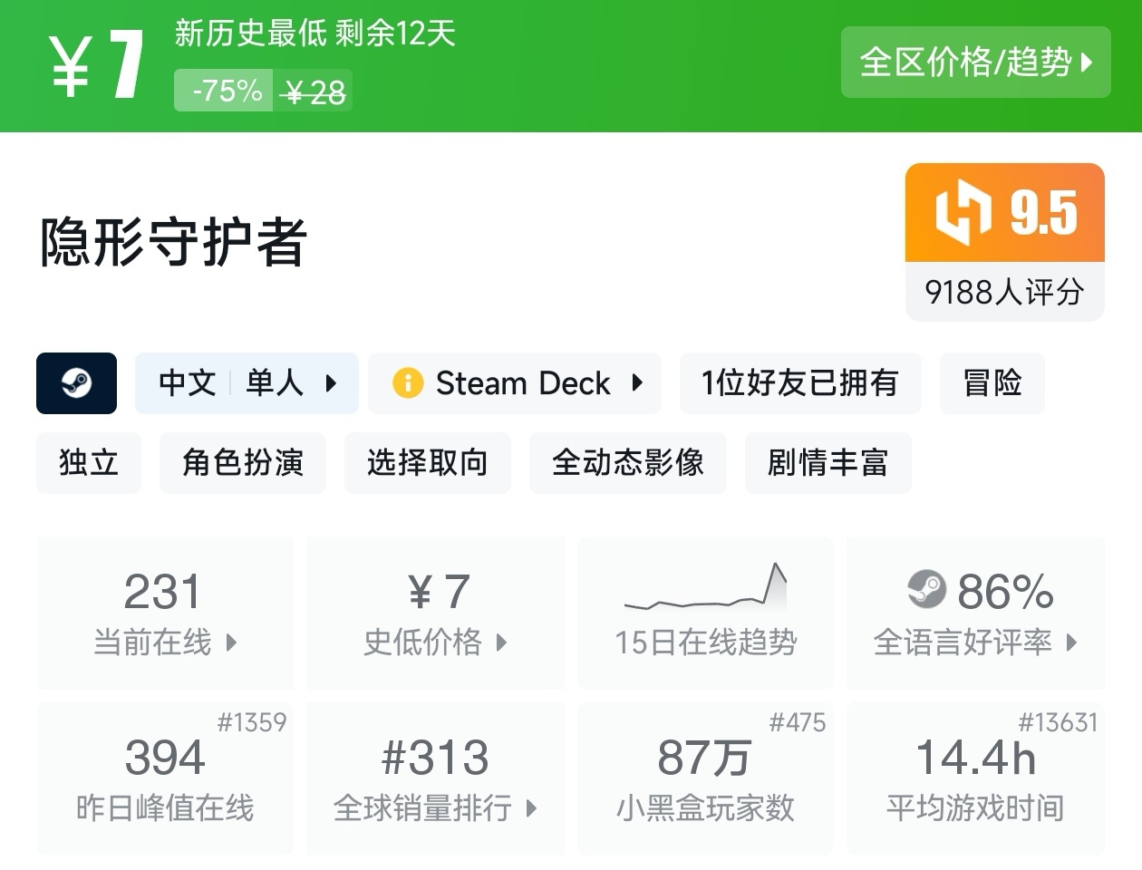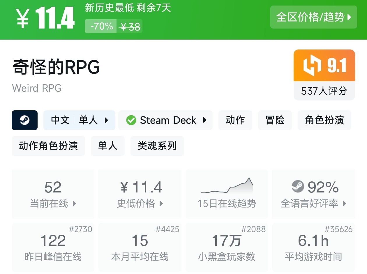 大家好,没错,又是我,你们的老朋友亦然,这不是最近Steam又有了一个游戏节,既然是游戏节,那就有很多新史低游戏,我看了眼,可以说诚意满满,有很多精品游戏都新史低,其实新史低游戏买起来最有安全感,因为在很长一段时间内都不回更低,我将为各位进行一个汇总,希望我的汇总,能够帮助各位盒友挑选心仪的游戏。