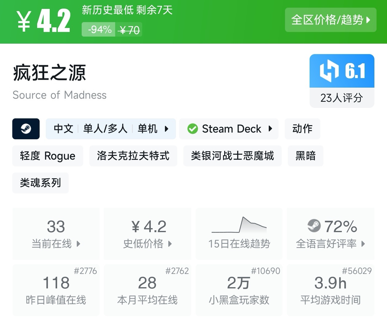 以上就是这期的折扣汇总,几乎涵盖了近期所有的新史低游戏,这些足足用了我一个小时。