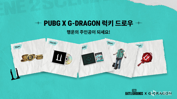快來參加 PUBG x G-DRAGON 聯名幸運抽獎活動,成爲領取限量周邊的幸運兒吧!即使不是 PUBG 玩家,只要有郵箱地址就都能參加抽獎活動!認證 PUBG 賬號時還能增加獲獎概率!另外,記得去 PUBG x G-DRAGON 相冊下載聯名圖片喲!
