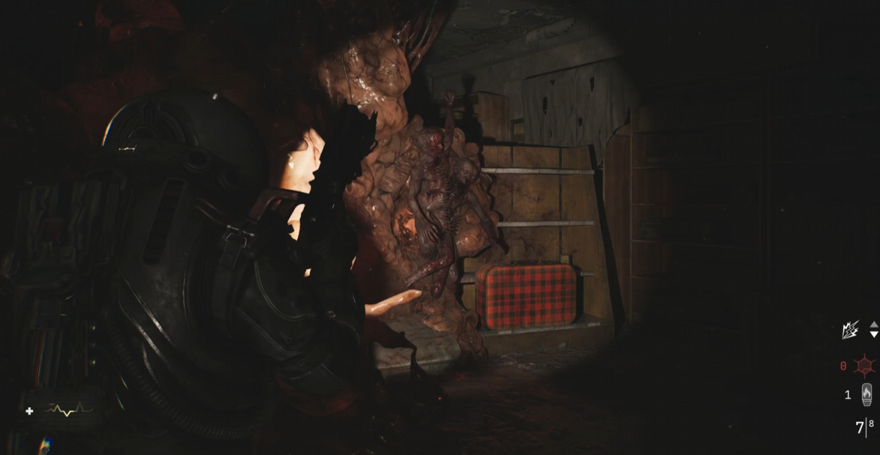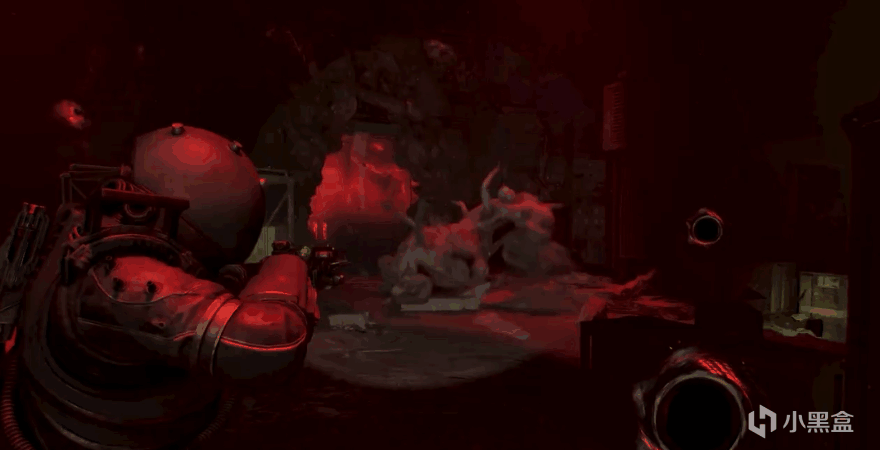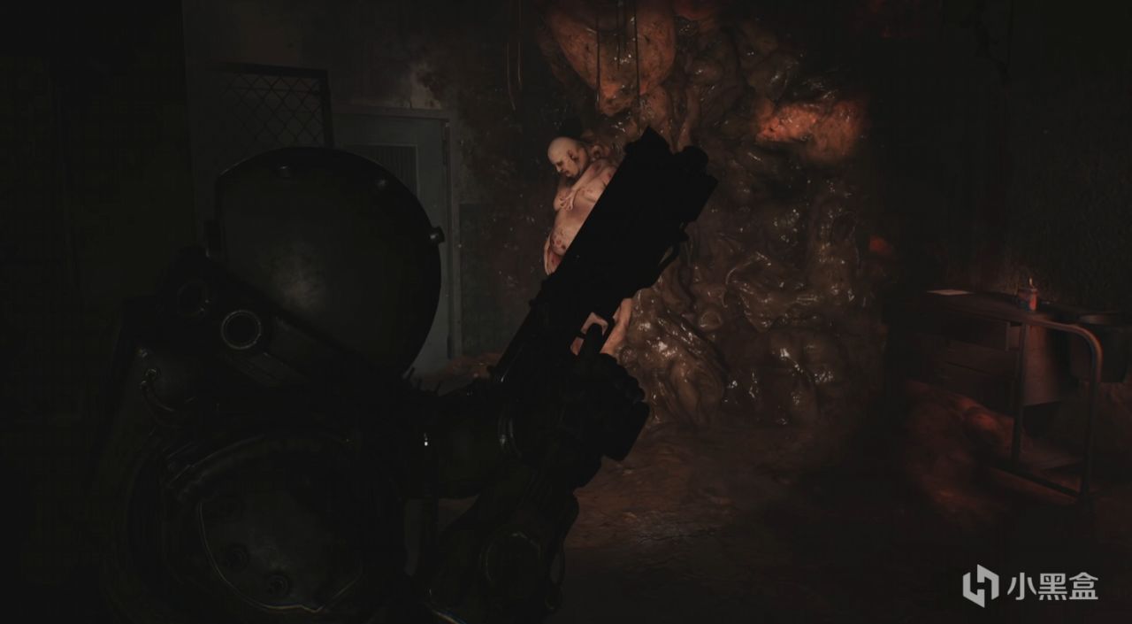 場景設計上,製作組似乎過於沉迷於“黑暗就是恐怖”的邏輯,過多時間都在黑漆漆的小場景裏徘徊,沉悶幽閉的空間,血肉粘稠的聲音,生存恐懼感確實給的很足,可與之伴隨的是高度的視覺疲勞感。