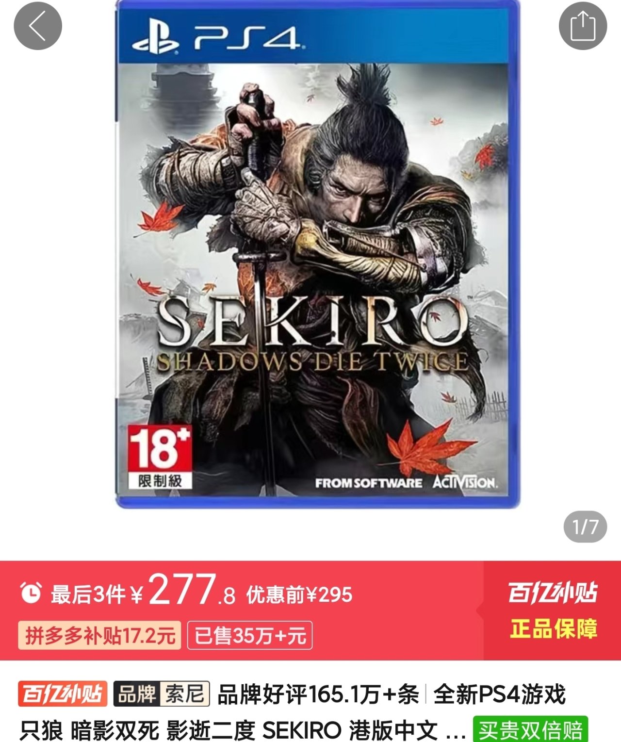順便一提現在只狼魂2魂3都在百補裏,屬於常態價格,