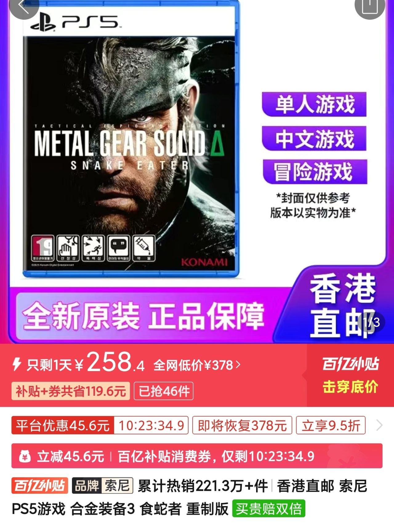 msg3re儘管很多島粉無腦推薦,實際上這遊戲重置的並不徹底,敵人邏輯跟關卡設計一類的都是原汁原味,圈內圈外熱度極低,價格也崩的很快,現在港版高於270已經算爛價了。