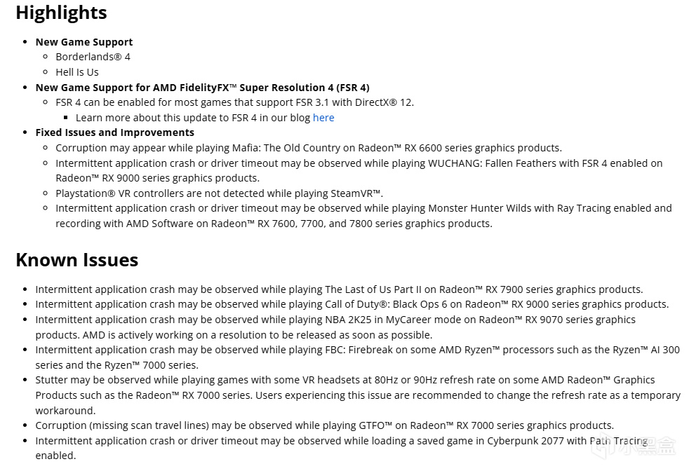 此外,AMD 还解决了一系列问题,包括影响老一代 GPU 的问题,例如 Radeon RX 6600 系列,现在它们在玩《四海兄弟:故乡》时不会再出现损坏、卡顿现象。Steam VR 无法检测 PlayStation VR 控制器的问题也已修复。