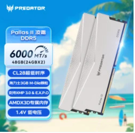 內存則是跟主板捆綁買來的 宏碁凌霜,24G*2 6000 C28,我個人其實喜歡燈條,但沒辦法誰讓跟主板一起打折呢,只要顆粒正確,品牌無傷大雅