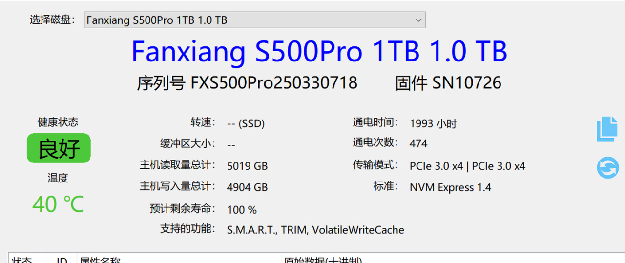 由於我用的老硬盤,有1993小時使用時間,大家的盤應該都是零,預裝系統的話2小時內,如果沒問題就成功下車