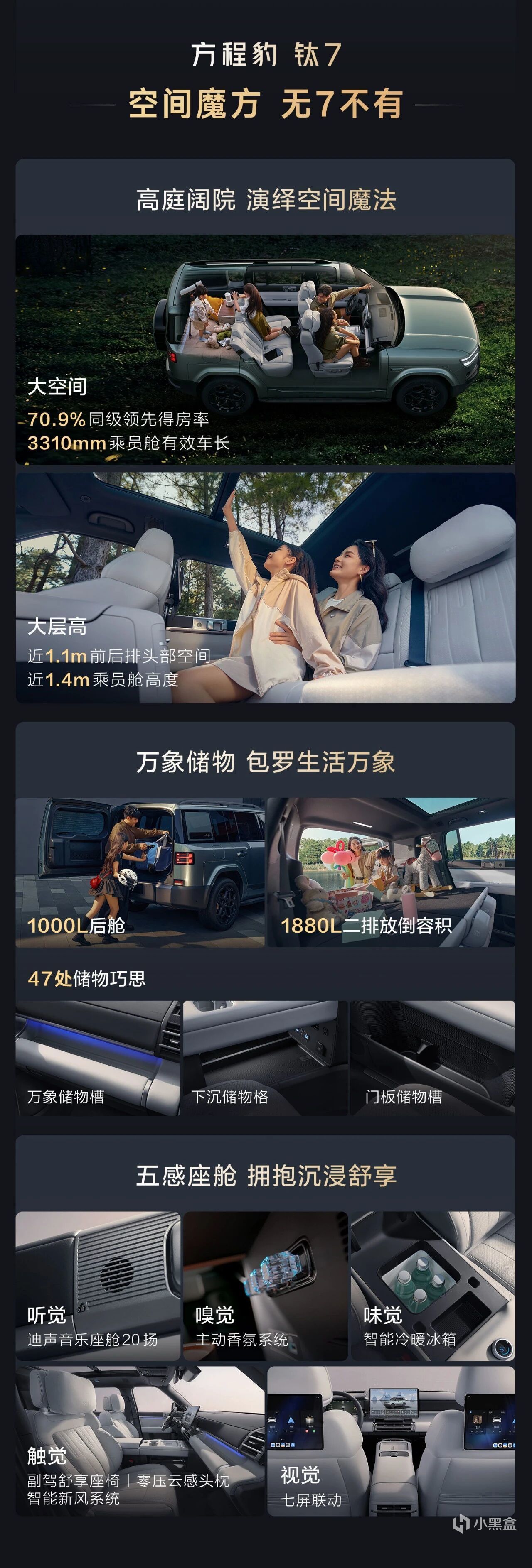 2920mm,車內採用 5 座佈局,後排座椅放倒後可形成 2.1 米純平空間。